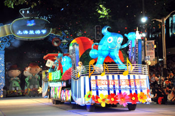 9月12日晚,上海世博會主題花車亮相上;春B。當日,上海旅游節正式開幕。上海旅游節是上海一年一度的全市性大型節慶活動,旨在通過觀光、休閑、娛樂、文體、會展、美食、購物等多種特色旅游產品和近百項活動,集中展示上海的風土人情。上海旅游節以“人民大眾的節日”為定位,至今已成功舉辦9屆,每年吸引超過800萬人次的市民游客參與其中。(資料照片) |