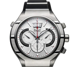 鈦金屬表殼,精鋼緣飾。深灰色、紅色及銀色表盤,夜光時間刻度。藍寶石水晶透明底蓋。鑲有精鋼的橡膠表帶,三折疊式鈦金屬表扣。 搭載伯爵制880P自動上鏈機芯,50小時動力儲存,飛返計時功能,第二時區顯示,大日期視窗顯示。 Ref. G0A34001 人民幣定價:145,400