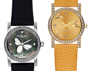 “Lune de miel”系列腕表白金版,蜜蜂形狀的白珍珠母在黑色波利尼西亞黑珍珠母表盤上起舞… “Lune de miel”系列腕表黃金版,3只由黃水晶、鉆石和黃金制成的蜜蜂在金色的蜂巢狀表盤上空飛翔… 微妙的細節:表殼上雕刻的“蜂巢”在腕表機械機芯擺錘處再現,透過透明的表殼背面可見。