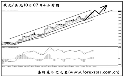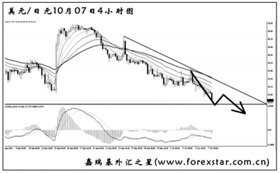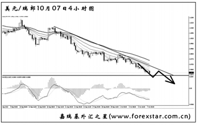 ▲美元兌瑞郎借助美元指數走弱的機會,創出了2008年3月以來的新低,跌破了0.9615的強支撐。圖中的下降趨勢線保持完好,雖然MACD發生了底背離信號,但效果一般。目前對美元兌瑞郎也要采取做空的思路,在小時圖尋找次要節奏入場,在趨勢線被有效升破前,建議不要考慮做多。