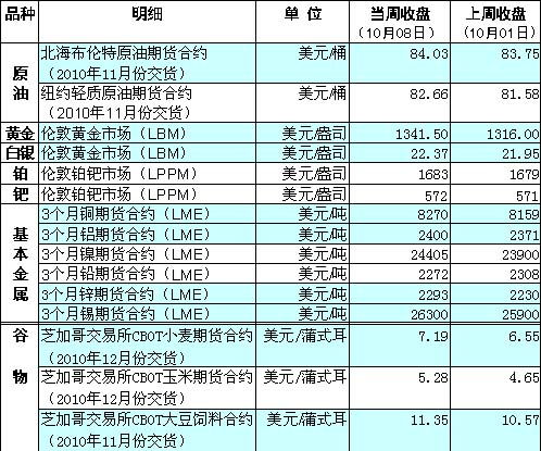 當周金價延續了上漲走勢,由于美元持續走弱,分析認為黃金價格未來仍將持續上漲。7日國際現貨金繼9月突破1300美元每盎司關口之后,沖破1350美元每盎司高位,再創新高。紐約商品交易所黃金期貨市場8日強勢反彈,交投最為活躍的12月合約收于每盎司1345.3美元,比前一交易日上漲10.3美元。當天白銀和白金期價也相繼走高。