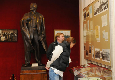 在芬蘭南部城市坦佩雷有一座長年對公眾開放的列寧博物館。博物館向人們展示列寧一生從事革命活動的業績以及列寧在芬蘭的活動。博物館收藏并展出與列寧從事革命活動有關的文物、圖片、文獻以及與列寧有關的油畫和雕塑作品,并保存著許多在其他地方很難找到的珍貴歷史資料和實物。 圖為10月12日,外國游客在列寧博物館參觀。