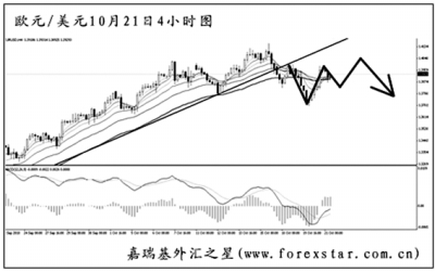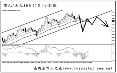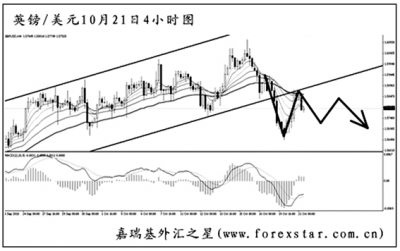 ▲英鎊兌美元短線下跌力度強勁,此前4小時圖持續的MACD頂背離信號發揮了一定的效果。前方高點阻力1.6000一線并未能有效突破,同時上升通道下沿跌破之后,英鎊面臨一段較為明顯的調整走勢,F在匯價在對通道進行回抽,操作上以小倉做空英鎊為主。