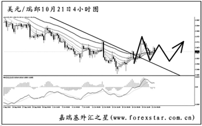 ▲美元兌瑞郎創出2008年低點0.9615的新低之后未能加速下行,短線強力反彈,已將下降趨勢線順利升破。從日線圖上看,美元兌瑞郎的跌勢沒有遭到任何的破壞。匯價在對趨勢線發生回抽,由于目前的價格已經很低,美元兌瑞郎再創新低的概率不大,后市將以震蕩上行為主。