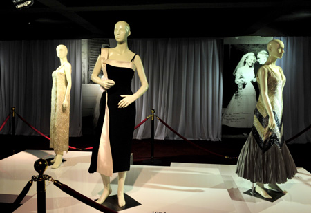 10月18日,意大利著名設計師FONTANA姐妹為美國前第一夫人杰奎琳·肯尼迪、知名影星伊麗莎白·泰勒和麗塔·海沃斯量身定制的禮服在北京伊人音樂SPA大樓舉行的“世界名人禮服展”上與媒體見面。這幾件禮服還將在10月28日舉行的“FONTANA禮服頂級工藝歐洲巡展”上展出。 圖為在北京“世界名人禮服展“上拍攝的美國前第一夫人杰奎琳·肯尼迪、知名影星伊麗莎白·泰勒和麗塔·海沃斯定制的禮服(由左至右),這三件禮服已分別被法國盧浮宮、意大利博物館和紐約博物館收藏。