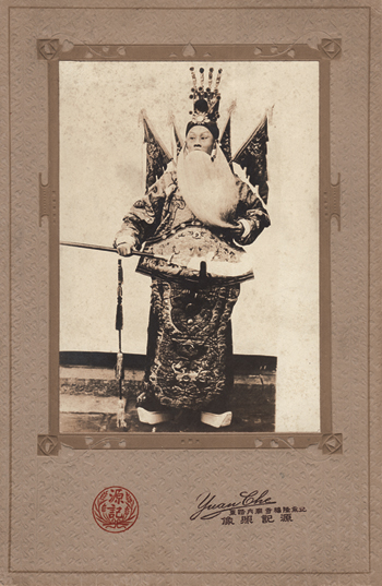 而出現在2008年華辰影像拍場的1219號拍品是這個影像的原版老照片,它表明了該照片是北京源記照相館所攝,而非出自泰豐照相館。隨后陸續面市的數張該影像的原版老照片,全部來自源記?紤]到源記是泰豐的競爭對手,拷貝泰豐的可能性不大,基本可以判斷這張照片不是1905年豐泰拍攝中國第一部電影《定軍山》時的劇照,而是源記拍攝的譚鑫培《定軍山》戲裝照,這個例證將可能改寫中國攝影史、中國電影史和中國京劇史相關內容。