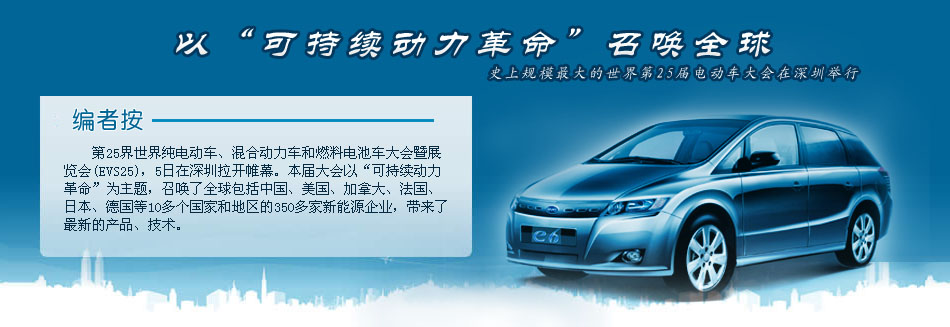 | 深圳市先后被確定為全國首批13個新能源汽車示范推廣試點市和全國私人購買新能源汽車試點市。根據規劃,到2012年,深圳私人購買新能源汽車數量將達到2.5萬輛,占全市機動車保有量的比例突破1%。[詳細] |