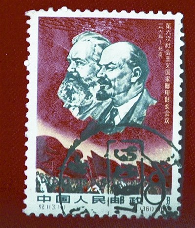 今年71歲的黃仕恒老先生,是一名興趣廣泛的收藏愛好者。這枚紅色的正版郵票是馬克思和列寧的頭像,面值為8分錢,下方“紀113·3—1[361]1965”,從郵票目錄上查到:這是第六次社會主義國家郵電部長會議的紀念郵票,1965年6月21日發行,影寫版,設計:盧天驕。