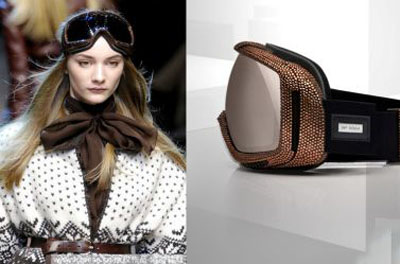 上一季,飛行員裝扮是潮流的主旋律,飛行員帽子、翻領夾克夾克以及大大的墨鏡。而這一季,斯堪的納維亞風格的滑雪look才是最佳之選。2010秋冬D&G秀場是最佳的詮釋,模特身上的最大亮點莫過于鑲有水晶的滑雪鏡了。