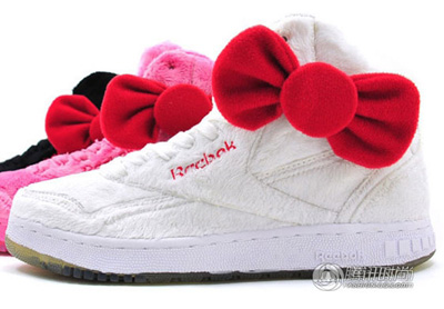 作為動漫界的附身女王最會搶錢的金字招牌,無嘴貓Hello Kitty從來不會放棄任何一個品牌合作機會,而廣大的擁簇也讓品牌們往往對Hello Kitty趨之若鶩。繼Dr. Martens之后,這次被Hello Kitty品牌盯上的是運動大廠Reebok,兩者合作了這款有大大的蝴蝶結標志的運動鞋,有黑、白以及Hello Kitty的招牌粉紅色可選,可愛的外型有些神似Reebok母公司Adidas與Jeremy Scott合作的系列,但希望不要像后者那樣一天之內就賣到斷貨才好。