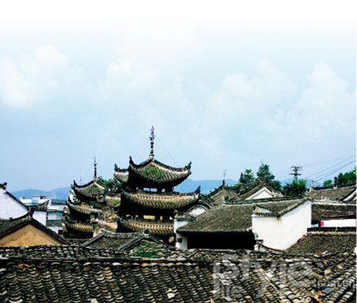 俯瞰小鎮,屋角飛檐,層層疊疊,各不相同。