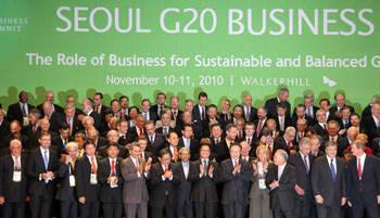 11月11日,出席首爾G20商務峰會的各國代表在會場合影留念。新華社發 |