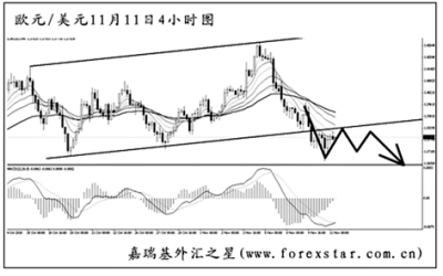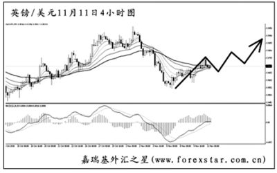 ▲歐元兌美元小幅創出新高之后急速下挫,已經將順勢旗形通道的下沿跌破。目前匯價正在考驗日線圖道氏理論顯著低點的支撐1.3710,跌破后還將挑戰均線系統的依托,所以歐元要想真正轉為跌勢必須要有效站穩在1.3600下方。從力度上分析,歐元調整過后繼續下調的希望較大。