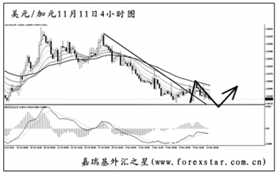 ▲美元兌加元將圖中的下降趨勢線升破,但均線系統仍然起到了良好的壓制效果。從日線圖上看,美元兌加元即將接近今年4月低點0.9930的支撐,能否跌破此位成為后市繼續下行的關鍵。從操作角度考慮,強支撐上暫時不要做空,若能夠暴發出多頭動能,則小倉順動能買入。