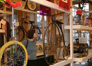 一名丹麥婦女在哥本哈根市博物館觀賞不同年代的自行車。 |