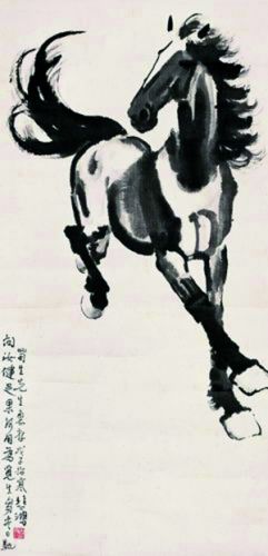 在榮寶拍賣公司關于這幅《奔馬圖》的文字介紹中稱,這件作品是畫家徐悲鴻在1948年贈給史學家鄧蜀生的禮物,“徐悲鴻的《奔馬圖》作于1948年初冬,其時中國人民解放軍發起三大戰役,傅作義部接受了中國共產黨的提議,北平和平解放在即。徐悲鴻與吳作人、艾中信、董希文等籌備建立‘一二七藝術學會’,以迎接北平和平解放這一歷史時刻!侗捡R圖》即為畫贈當時北平新華總社記者、后來中國著名的史學家、中國的美國史研究第一人鄧蜀生先生的”。據介紹,《奔馬圖》的落款處,還題寫有“蜀生先生惠存”的字樣。