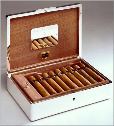 Marshall說:“人人都看過木制雪茄盒。但沒人見過銀質雪茄盒!痹诩~約,他坐在一張桌子前,旁邊是一杯濃濃的咖啡和一支點燃的雪茄,他的前面是他