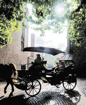 “這只是我偶爾在晚上才做的兼職。相比握方向盤,我還是更喜歡拉著韁繩!盞LASS先生說這番話時,我已坐上他的車,從火車站拐了一個彎,進入布魯日古城。那時下著淅淅瀝瀝的小雨,昏黃燈光映照下的狹窄小路迷宮般地七拐八繞,兩旁的老房子和偶爾出現的教堂、小橋從窗外閃過,這樣的情景,與布魯塞爾簡直有天壤之別。車在并不平坦的古老石磚路上開過時咯噔咯噔作響,豪華車的減震系統似乎并不適合這里!斑@樣的地方,更適合坐馬車!
