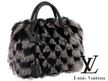 一款蓬松狐貍毛制成的手袋則使用灰黑或棕褐相間的狐貍毛皮拼接,再次表現品牌經典的Damier格紋。