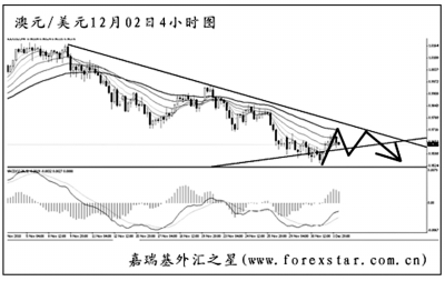 ▲澳元兌美元的下跌已經將日線圖均線系統的依托和道氏理論顯著低點的位置雙雙跌破,中線MACD處于空單堅定持倉階段。目前匯價正在考驗大級別上升趨勢線的支撐作用,跌破方可打開進一步的下行空間。操作上以再度創出新低后做空為主思路。