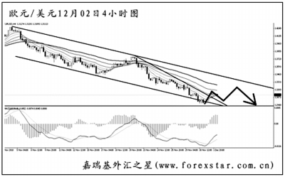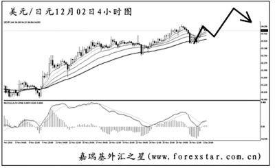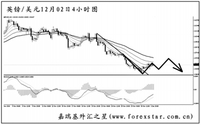 ▲美元兌日元繼續著自己反彈的腳步,目前已經將日線圖的均線系統升破。雖然圖中出現了角度明顯的MACD頂背離信號,但匯價的漲勢很難改變。美元兌日元上方面臨的首要強阻力是9月中旬日本央行干預后的高點85.95,只有升破此位才能展開更為明顯的上行。