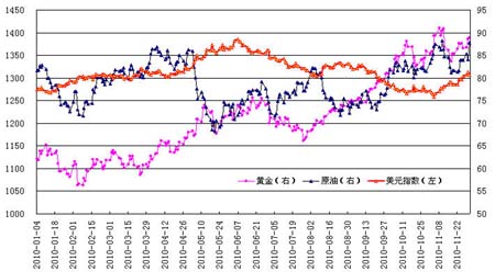 根據永安期貨研究院鄭若金的分析,自2001年10月2日以來,雖然國際油價與美元指數一直具有較高的負相關性,但是這種關系不是簡單的反向關系。2010年11月4日,美元指數觸及75.631,創年內新低,但隨后因歐債危機重燃,美元指數終止下跌態勢轉而震蕩上行。
