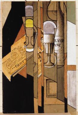 《杯子、報紙和酒瓶》 胡安-格里斯 1913年
