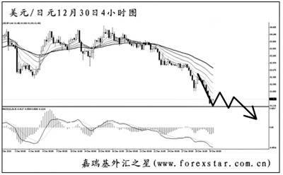 ▲美元兌瑞郎跌破日線圖旗形下沿之后,沿通道一路走弱,目前匯價正在挑戰10月中旬的低點0.9460支撐,跌破后下方空間將無比廣闊。最近瑞郎的走勢分化,且是歐系貨幣中最強勁的。目前對美元兌瑞郎絕對不能抱以抓底的思路,應等待調整節奏出現后繼續做空。