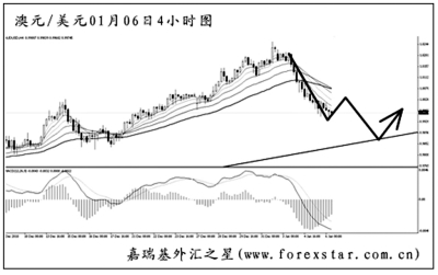 ▲澳元兌美元小幅創出日線圖新高之后急速下行,形成一個2B原理走勢。匯價下跌斜率很大,已經將最近的一條下降趨勢線跌破,圖中均線系統即將轉為空頭排列。澳元下方面臨的首要強支撐為日線圖的另外一條上升趨勢線,位置在0.9860一線,跌破后方可宣告澳元階段性筑頂的成功。