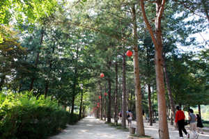 走過水杉道,可以看到精致小巧的花石園、花石亭,然后是南怡將軍墓。南怡將軍作戰英勇,百戰百勝,最后卻含冤而死,埋葬在此。墓碑上綠草茵茵,松鼠們穿梭歡悅,想來勞累一生的將軍也會滿意如今自己的休息之地吧。