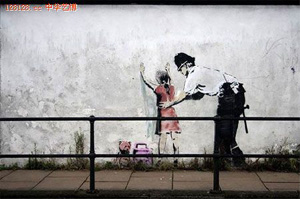 | 班克斯涂鴉作品。 |