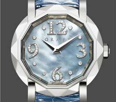 格拉夫鉆石榮譽呈獻其最新女裝腕表——GraffStar系列38毫米直徑珍珠母貝表盤鑲鉆腕表,這將注定是又一枚集經典、優雅及睿智于一體的大作。此最新系列有3種顏色可供選擇:粉色專為浪漫少女而生,藍色賜予敏感細膩的心靈,而白色則獻給獨立自強的成熟女性。