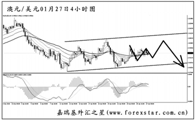 ▲澳元兌美元在區間內震蕩運行,圖中均線系統被反復穿越,客觀趨勢橫盤。從大級別圖形上看,此次調整為前方高位下跌的次要節奏,只要澳元不向上有效突破區間上沿,則后市繼續展開大幅下挫的概率較大。在突破前,建議投資者先行觀望為好。
