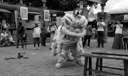 1月22日,南非約翰內斯堡布魯瑪工藝品市場華人進行舞獅表演。據統計,南非約有30萬華人,主要集中在約翰內斯堡地區。春節臨近,他們開始以中國傳統方式慶祝新春佳節。