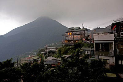 人們提起九份,言必稱“悲情”,完全是因為侯孝賢在這里拍攝了電影《悲情城市》。如果不是這天的天氣,我們也很難了解九份的“悲情”究竟是什么光景。九份一面是山地,另一面是海景,晨昏和四季都有不同的景致。春天觀櫻,秋天看芒花,夏日有風,冬日有霧,夜里則可以看海上的漁火和天上的月亮。