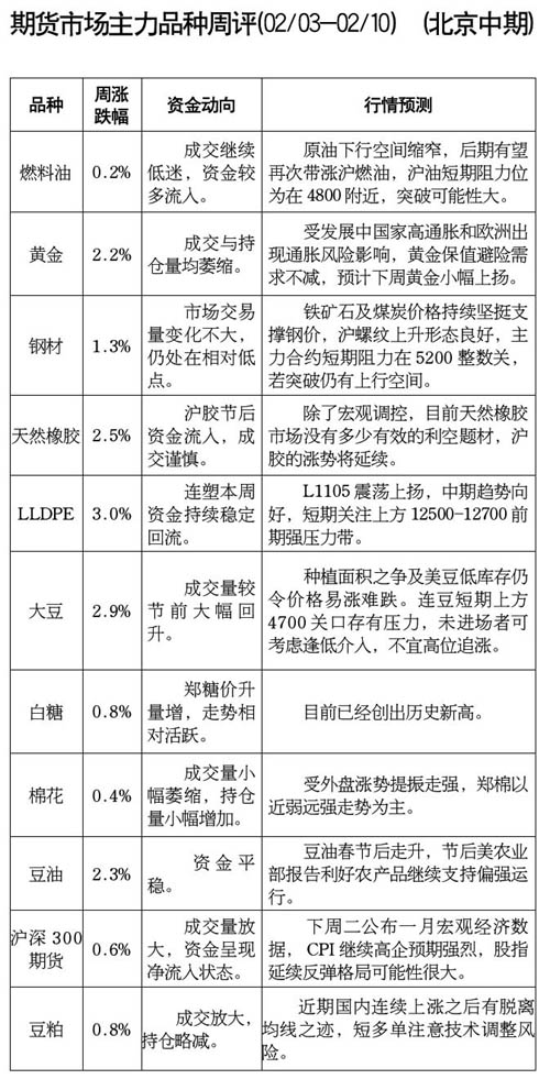 期貨市場主力品種周評[2010.12.31-2011-01-06]