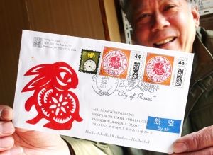 去年11月,熊崇榮將個性化郵票方案通過電子郵件發送給美國的華人朋友段慶安,委托其在美國通過網上郵局進行申請。今年1月22日,是美國生肖郵票的發行日,也是熊崇榮揚州剪紙個性化郵票的發行日。郵票發行后,段慶安立刻通過掛號郵件給熊崇榮大師寄來了個性化揚州剪紙郵票的首日封。熊崇榮告訴告訴記者,當時,他一共寄去了三套揚州兔年剪紙方案,最終,美國國家郵政局選中了首日封上的這套方案。