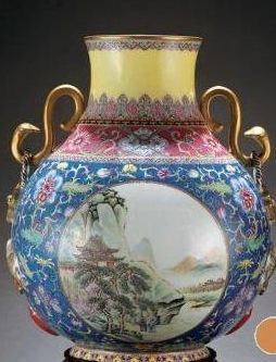 琺瑯彩開光山水如意萬代尊(民國)