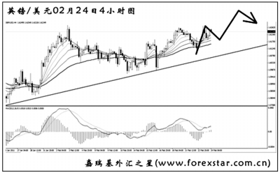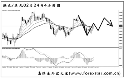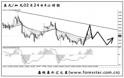 ▲美元兌加元在跌破了去年4月的低點0.9925一線之后繼續震蕩下行,從4小時圖上看,匯價走勢雜亂無序。圖中下降趨勢線為日線圖構筑,對匯價形成了很好的壓制作用。按目前的趨勢判斷,美元兌加元將繼續以震蕩走弱為主,何時能夠突破下降趨勢線成為匯價反轉的先決條件。
