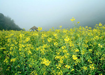 在海拔1000米的石灶天池上的石門國家森林公園里,有著被譽為廣東第一高山的油菜花海。上百畝的油菜花田,綿延了將近兩公里。微風吹來,漫山遍野的金黃色如波浪翻涌,在茂密森林和天然河谷的映襯下,構成一幅心曠神怡的田園風光圖。今年公園更新設了獨特的“梯田油菜花”,站在頂端之上,一級級交錯的油菜花海就在腳下,仿如一本立體的燙金畫冊。