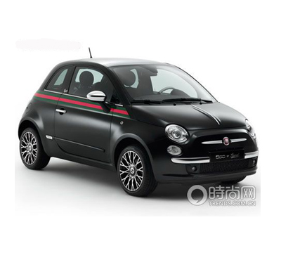 Gucci在秋冬發布的慶功宴上,發布了一款與意大利汽車Fiat合作的汽車,由Gucci創意總監Frida Giannini和Fiat的設計總監Centro Stile共同設計而成,以黑白色系為主,點綴了Gucci的logo圖案,以及經典的綠紅條紋,也順勢推出了一系列的周邊紀念商品,像是休閑外套、包款、手表以及太陽眼鏡,該款車將會在4月1日起開放預購,售價17000歐元(約人民幣15.5萬元),限量500臺。