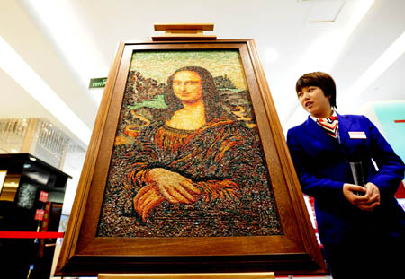3月7日,一幅《蒙娜麗莎》寶石作品在沈陽一商場展出,吸引了眾多市民的目光。這幅作品由收藏者用30年時間,耗用10萬多克拉各種顏色的寶石原石,并聘請歐洲工藝大師歷時五年打造而成,價值不菲。新華社發