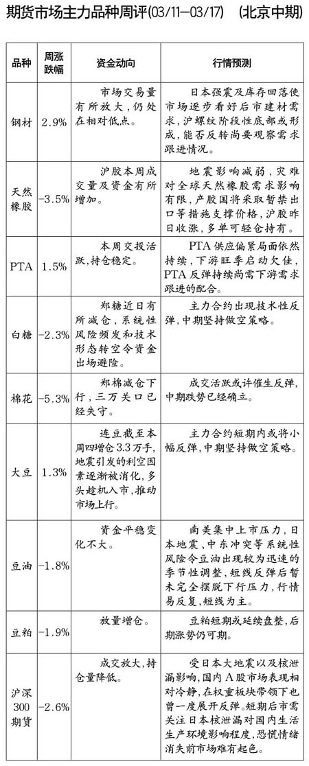 期貨市場主力品種周評[03.11-03.17]