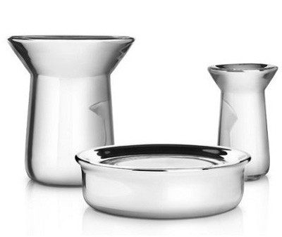 以簡潔樸實的線條造型,凝聚出的銀色光澤表面,讓每一件作品除了反映光線的投射,并且同時映照出四周與其內部所盛放的物體的形態,讓水銀玻璃容器成為烘托周遭氛圍的來源,間接強化空間主題的塑造。