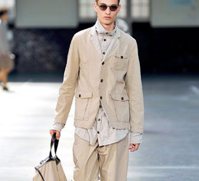 沙色總是在棕色與白色之間調和,棕色成熟,白色稚嫩,而沙色成為最中庸的選擇。搭配方面,沙色總是伴隨著土黃色而行,休閑的土黃色西裝搭配沙色休閑褲,麂皮鞋舒適具備親和力。另外,搭配皮質與麻質的提包時要夸張提包的體積感。