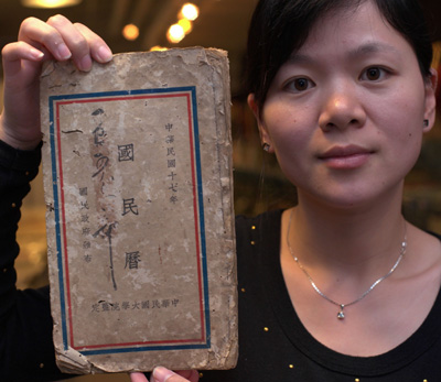 圖為拍賣行工作人員展示一本1928年出版的民國時代“國民歷”。新華社發