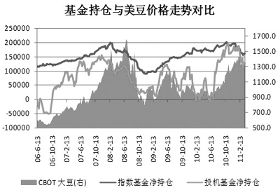 總的來看,在豆類市場中,投機基金下調大豆、豆油凈多持倉比例,而增加豆粕份額;指數基金則保持穩中略增的局面。