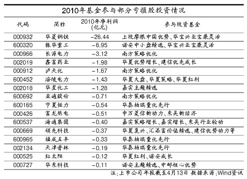 其他業績出現虧損的鑫富藥業、瀘天化、涪陵電力、紅太陽、領先科技、海通集團等10多家上市公司,虧損額均在2億元以內,這些上市公司也不同程度地受到了基金的關照。