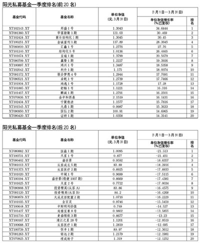 私募排排網統計的去年陽光私募年度收益前十名,今年一季度的開局并不十分理想。Wind統計顯示,一季度只有3只取得了正收益。常士衫掌管的“世通1期”保持著12.35%的回報率,華寶1號收益率達到8.90%,澤熙瑞金1號也有6.82%的回報率。而“從容醫療1期”損失最慘重,一季度回報率為-12.70%;另外西域投資旗下的“光華59”回報率為-11.22%,理成資產旗下“理成風景2號”收益率為-9.28%。
