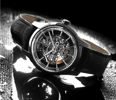 Vision同軸鏤空鉑金限量版采用啞光黑色皮表帶,搭配拋光950鉑金材質表扣。腕表防水深度100米。